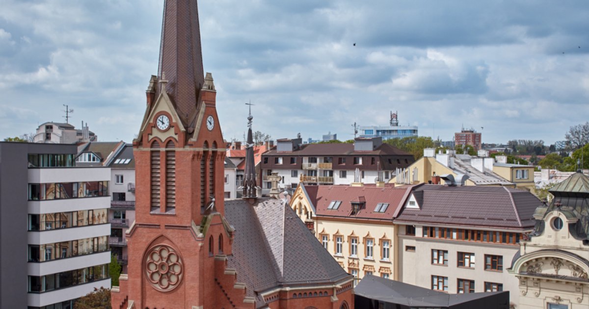 Red Church in Olomouc transformed by Atelier-r into a cultural venue blending historic restoration with a striking modern annex.