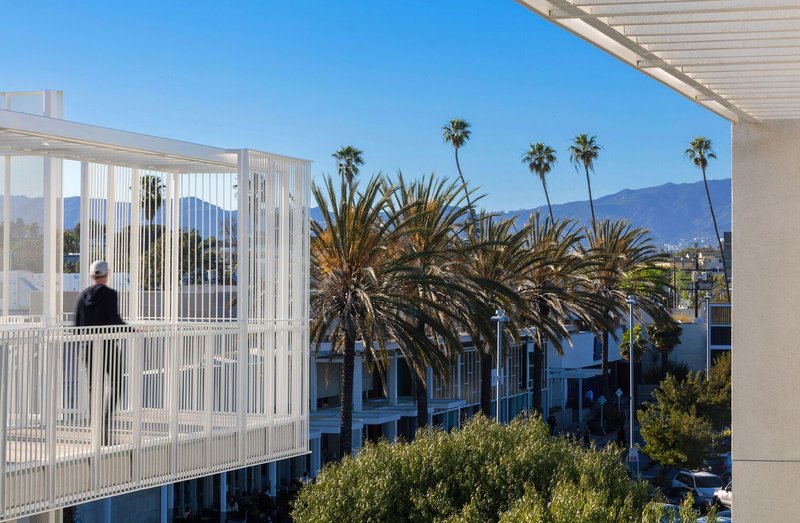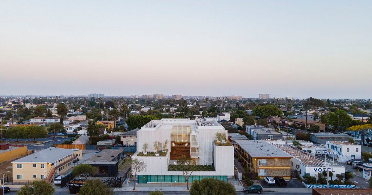 Situated on Rose Avenue in Venice, the building occupies a walkable, transit-oriented site that minimizes reliance on cars. Everyday amenities—including grocery stores, laundromats, retail, and services—are directly across the street, while the Pacific coastline lies just seven blocks away. By embedding affordable housing within a desirable urban fabric, the project challenges patterns of socio-spatial segregation and allows low-income residents to remain close to jobs, services, and community life.
