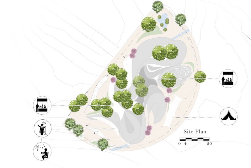 Spaces such as open amphitheaters, black tents, and community centers, etc., were intended for activities such as holding music and singing ceremonies, observing the stars at night, and so on to create cultural activities and attract tourists.