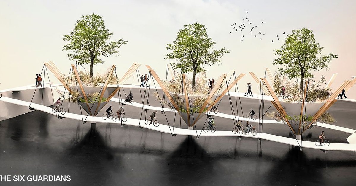 The Six Guardians is a visionary example of sustainable bridge architecture that redefines infrastructure as an active public landscape. Conceived as an ensemble of small-scale public spaces, the project transforms a conventional urban crossing into a green civic experience that supports mobility, ecology, and social interaction. Designed for Copenhagen, the proposal responds directly to the city’s ambition to become carbon neutral while strengthening its identity as a global leader in cycling infrastructure and environmentally responsible urban design.