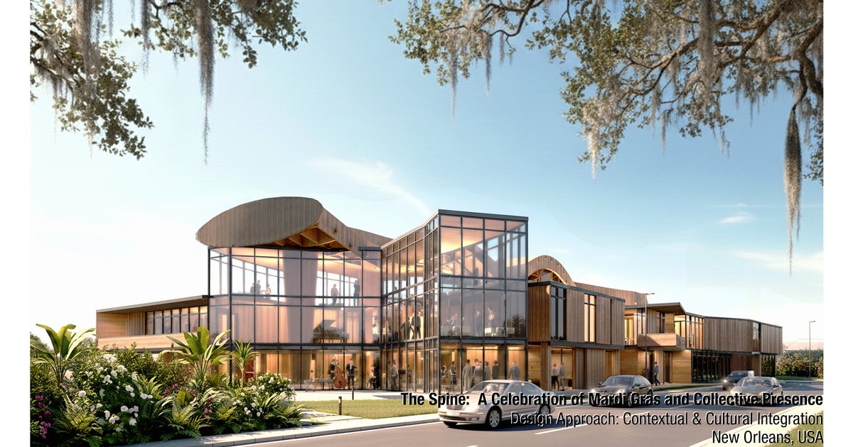 By merging float-inspired form, processional space, and culturally resonant ornament, The Spine offers New Orleans a permanent vessel for celebration. It is both archive and stage, workshop and theater, beacon and canopy. Above all, it is an architecture of collective presence, carrying forward the spirit of Carnival into the everyday life of the city.
