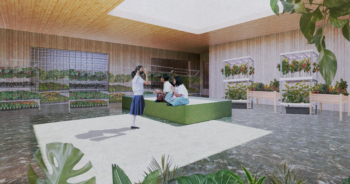 After some formal and spatial iteration (i.e. positioning of the school and program), I arrived at the final design in which all these elements come together to create a building where nature becomes an integral and ever-present part of every student's time at the school. Three separate wings (elementary, intermediate, and high school), are connected through "wells of wonder" which are multi-functional spaces where the main design elements of playful interaction with nature are on full display. Planters line the perimeter of the school and the same formal logic is applied to the rest of the site in order to maintain a consistent sense of rhythm in the landscaping. Overall, the Magkasuwato School ensures that every student, staff and visitor is able to create or repair their relationship with the land and is constantly aware of its presence within their lives.