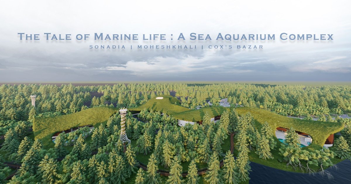 The project "The Tale of Marine Life: A Sea Aquarium Complex," conceptualized by Faisal Ahamed, is an architectural marvel designed to blend marine education with sustainability. Nestled in the ecologically sensitive Sonadia Island near Cox’s Bazar, Bangladesh, this sea aquarium complex aims to conserve marine biodiversity while promoting eco-tourism. The development of this project under the Bangladesh Economic Zones Authority (BEZA) is part of a broader initiative to transform Sonadia into an eco-tourism hub without compromising its rich biodiversity and fragile ecosystem. This project has garnered significant attention due to its eco-friendly approach, winning the People's Choice Award at the UnIATA 2024 design competition.