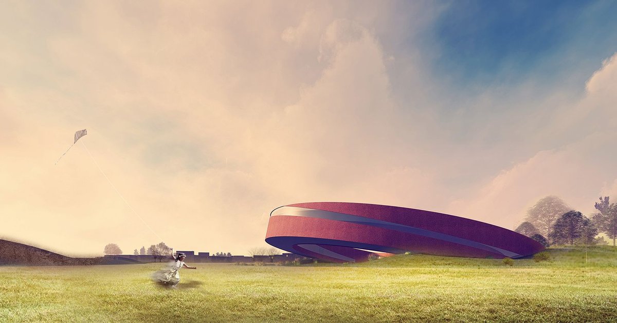 Situated along the central axis, the exhibition hall forms a ring embedded within the earth. Visitors enter through a circular sky that seamlessly connects the natural and architectural elements, symbolizing infinity. Upon ascending to the highest point, the city’s skyline unfolds to the south, while descending reveals the contours of the ancient city—offering a juxtaposition of history and innovation.