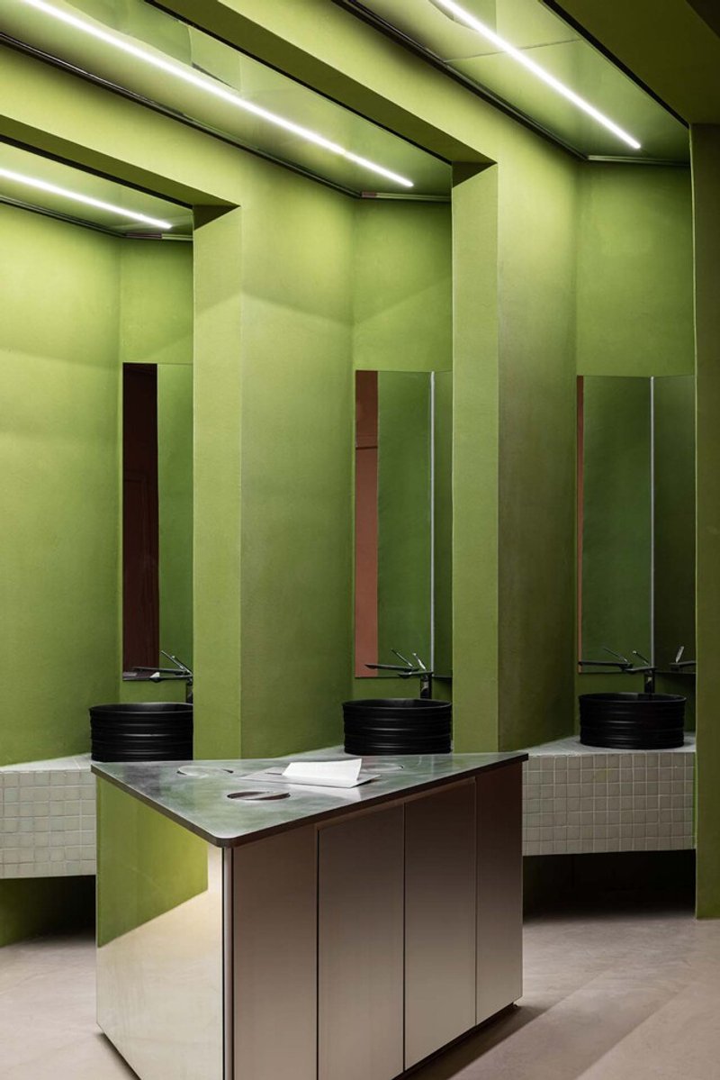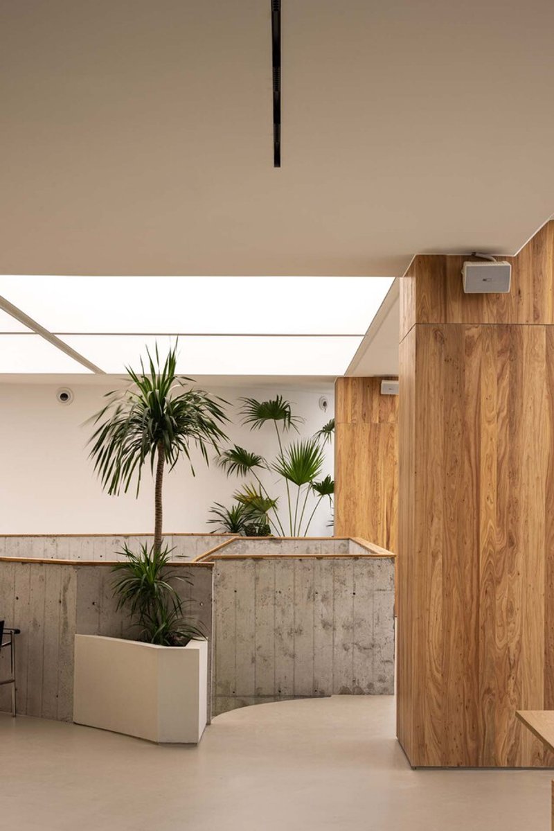 - Historic Material Reuse: Original steel bars and curved steel components, once part of the bank’s security infrastructure, were creatively integrated into the main hall, lift shaft coverings, and even as ceiling details in the office area—reinforcing the narrative of transformation.
