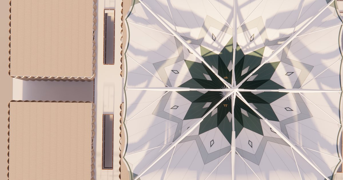 The main aim in the whole design was to keep it expansive and executable. The design of the tents is kept simple and efficient. The cubical form has strong structure from inside, to keep it stiff and load bearing. The outer shell is covered by heat resisting fabric membrane that act as shield from the harsh sun rays. For the vertical circulation, ramps are placed which joins with the external corridors. The whole structure can be easily dismantled to install at other position if required. Every super module is covered by a retractable umbrella on top. The umbrella no only protects the residing pilgrims from heat, but also can be used as solar power generator in future. The whole design is in such a way that it can easily be expanded and moulded in whatever direction required as per the situation.