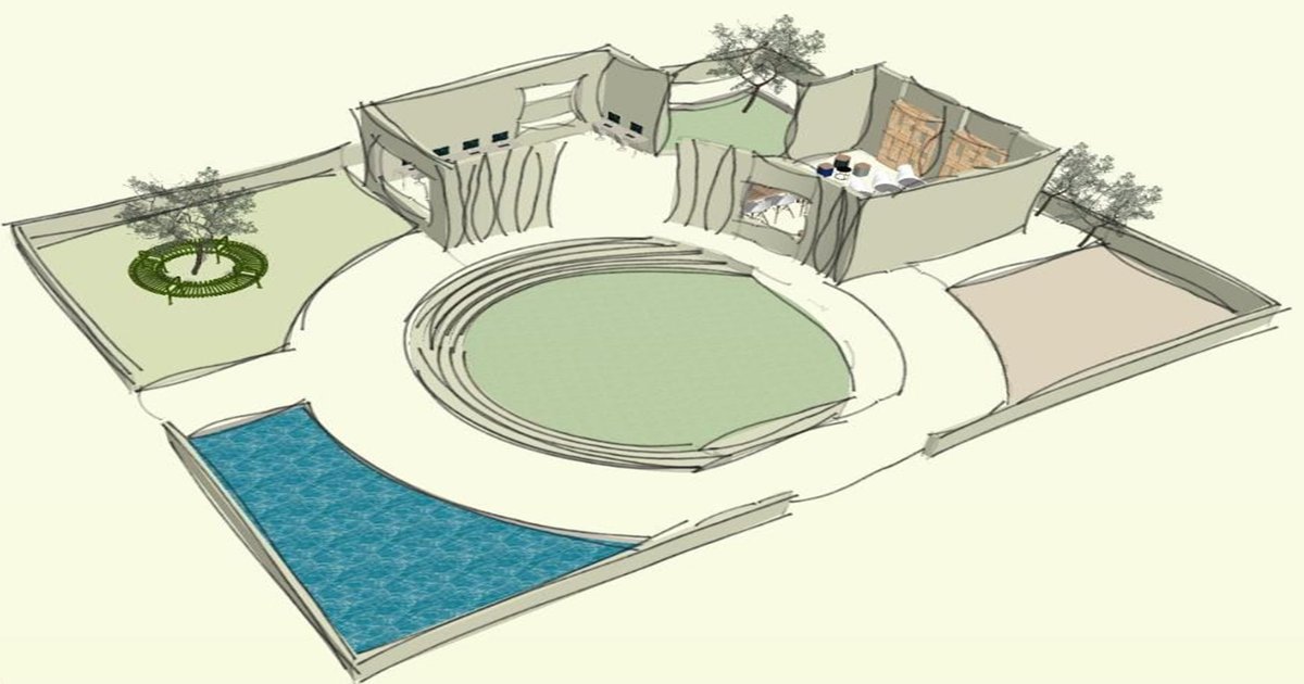 2) Panchayat space - A traditional panchayat seating ( circular seating around tree) is designed on the site to address common issues.