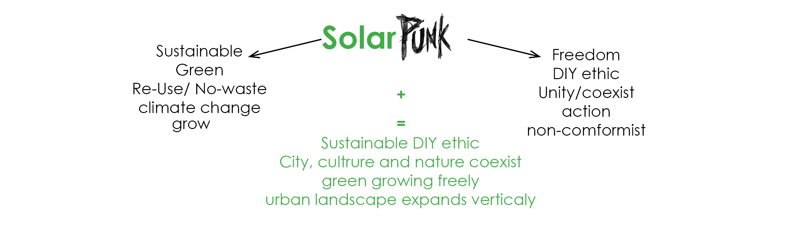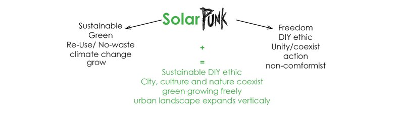 From definition, is both a lifestyle movement and a relatively new eco-futurist, speculative fiction subgenre focused on envisioning a positive future beyond scarcity and hierarchy, in which humanity is reintegrated with nature, and technology is used for human-centric and ecocentric purposes. Solarpunk philosophy tends to be fairly pragmatic and proactive, it asks 'what can we do right now'