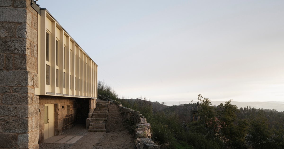 In Muimenta, Spain, timber and plywood volumes graft onto granite ruins to anchor a rural revitalization effort.