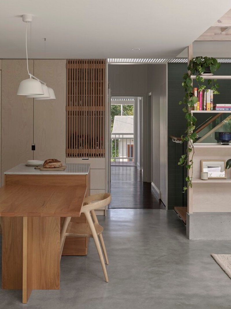 Dining experiences shift between fully interior during rare cold or wet weather, threshold positions that engage both zones, and fully exterior during optimal conditions. This flexibility responds to Brisbane's climate and lifestyle expectations while avoiding the environmental and spatial waste of building unnecessarily large interior volumes.