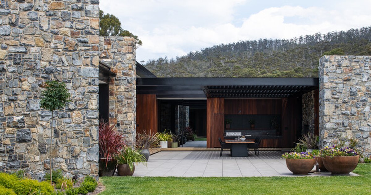 Tinderbox House in Tasmania by Studio Ilk blends passive solar design, mudstone, timber, and coastal views into a sustainable, luxurious family retreat.
