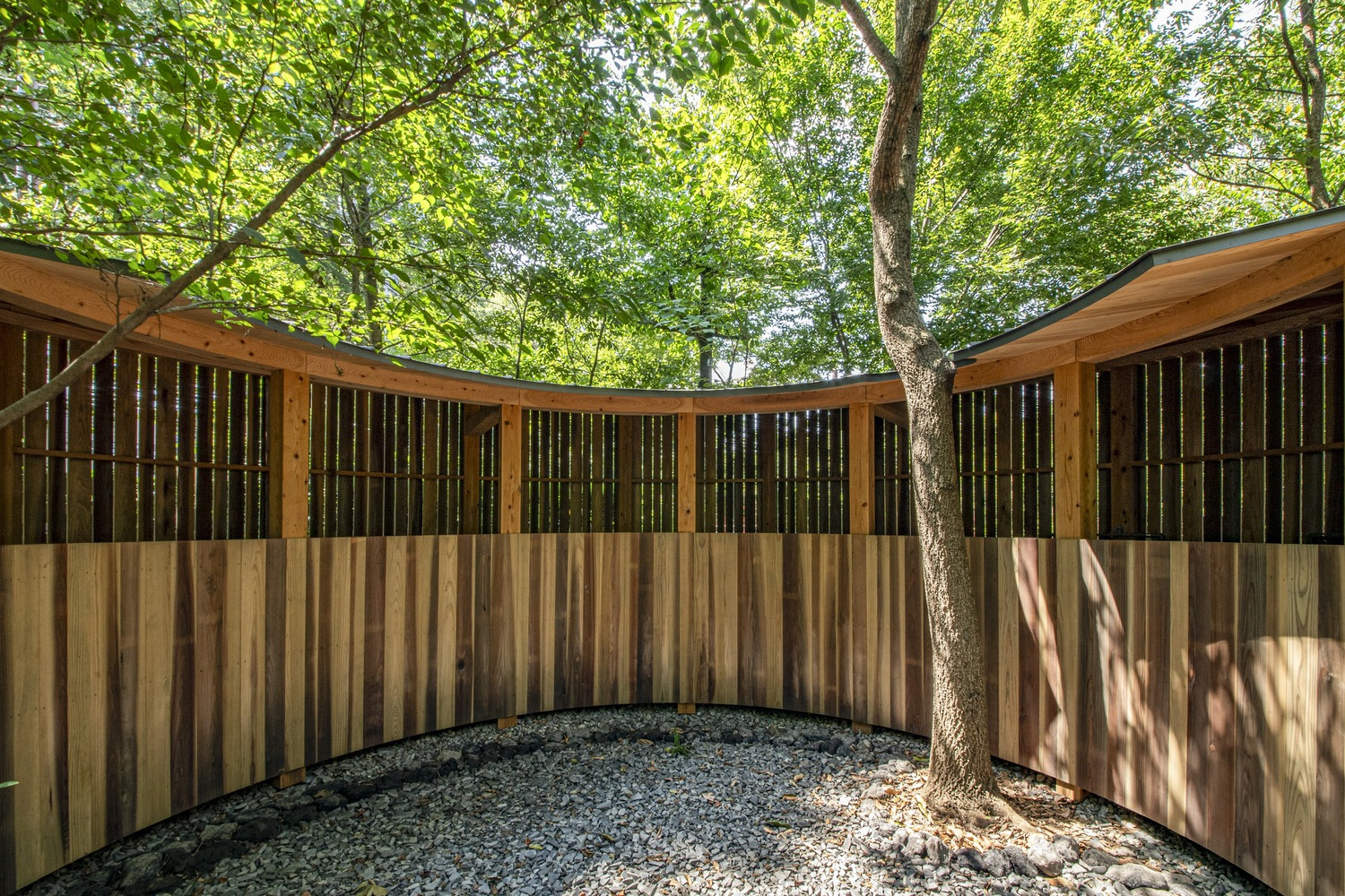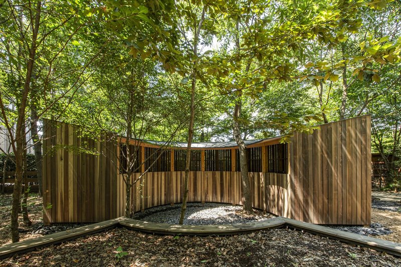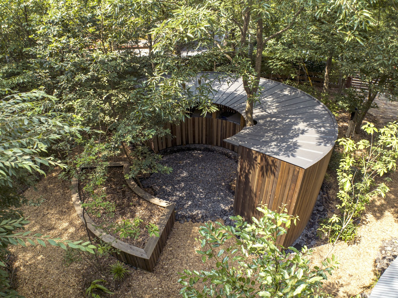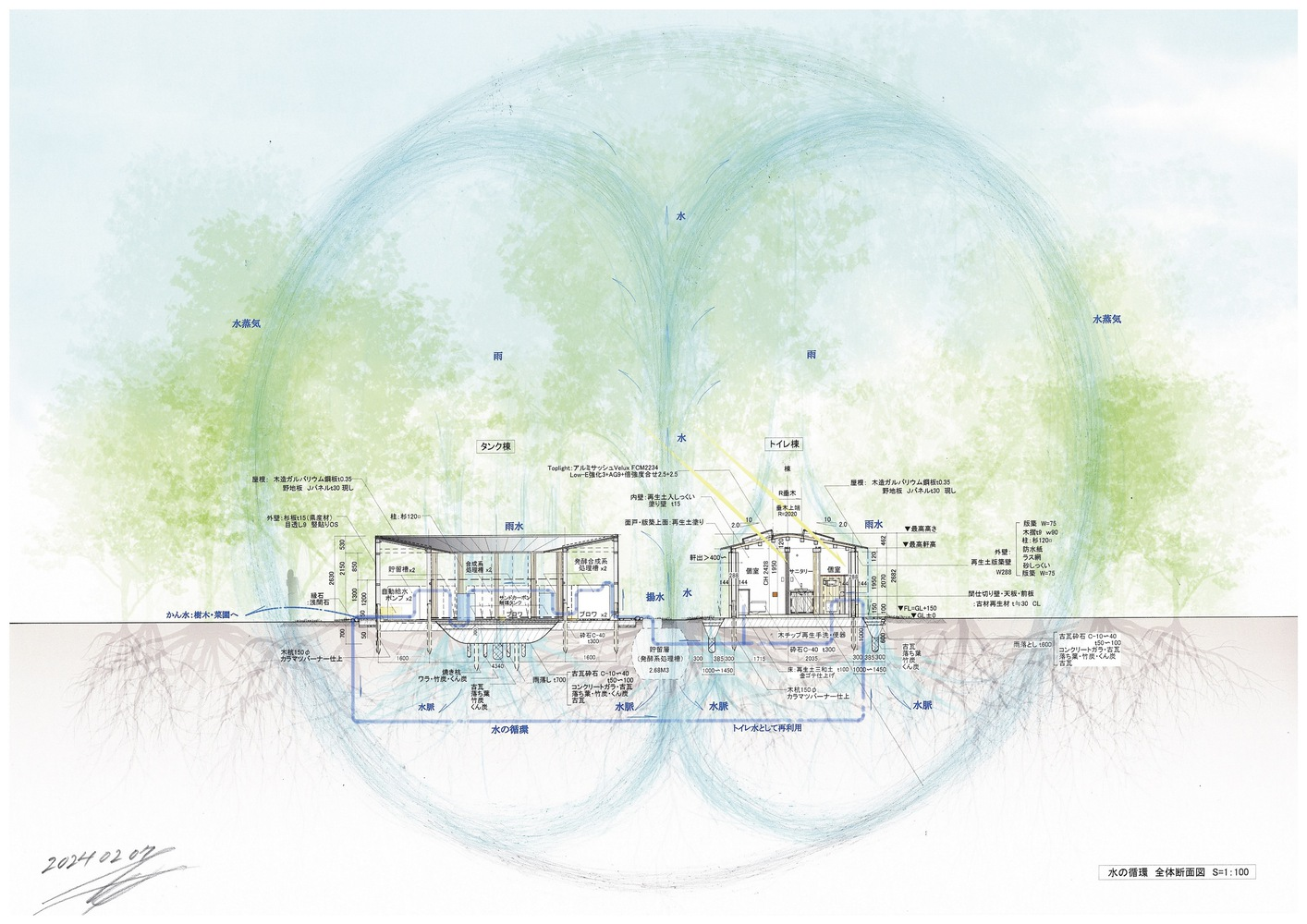 Located adjacent to the lush forests of Miyoshi, the design of TOILETOWA incorporates the existing landscape into its structure. The building's foundation uses crushed stone instead of concrete and features wooden stakes, minimizing its ecological footprint and blending seamlessly with its surroundings.
