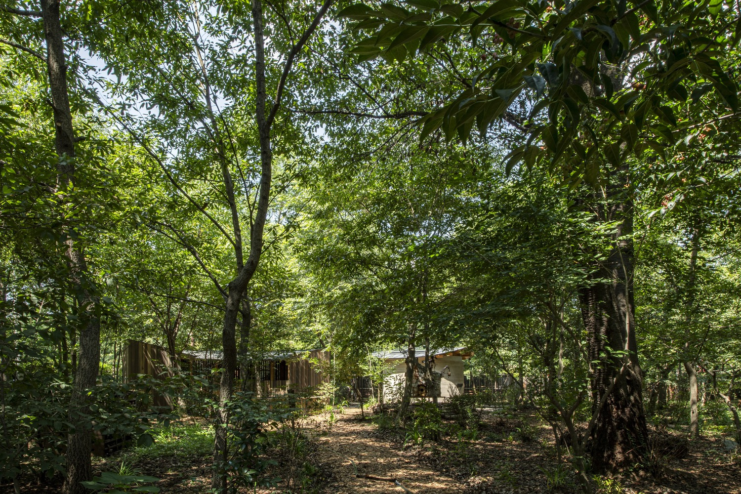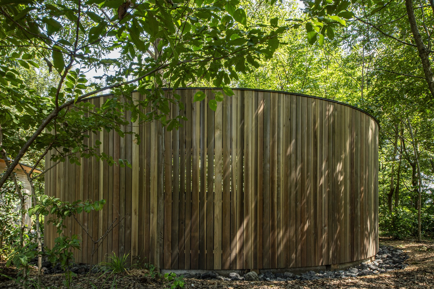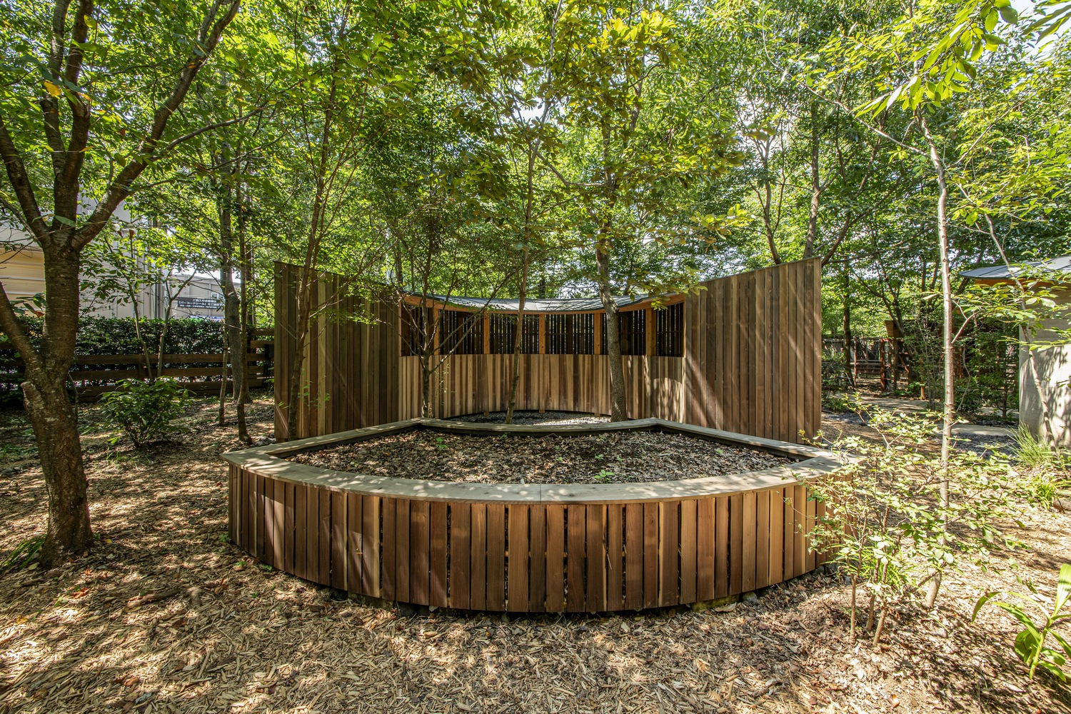 Located adjacent to the lush forests of Miyoshi, the design of TOILETOWA incorporates the existing landscape into its structure. The building's foundation uses crushed stone instead of concrete and features wooden stakes, minimizing its ecological footprint and blending seamlessly with its surroundings.
