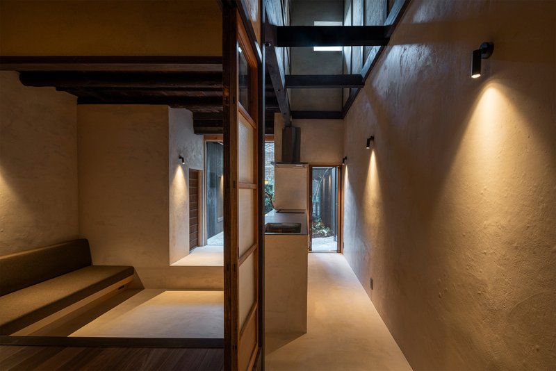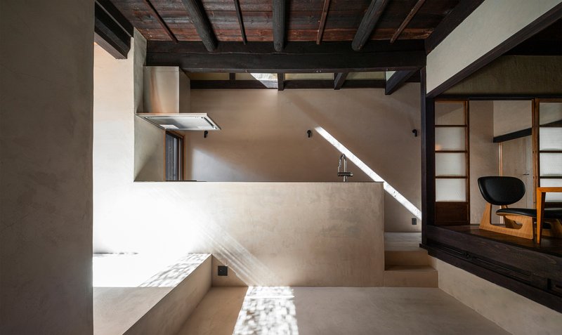 While the exterior and room functions preserve the Machiya spirit, the renovation introduces modern elements to meet contemporary living standards. This includes creating a new living space within the semi-basement area, once a textile workshop, now transformed into a cozy, den-like environment for relaxation and leisure.