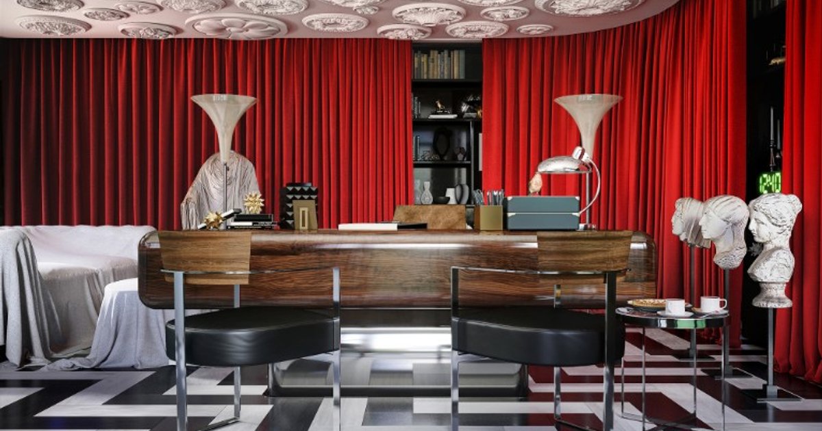 The pop art element is still there, but Almodovar’s is a look both swarthy and slick, raw and pushed to the excesses of sophistication. The interior design in his latest, Pain and Glory, demonstrates the filmmaker’s over-the-top philosophy: if every element sticks out, no element sticks out. For our Almodovarian home office, that means the unifying principle is “anything goes” – as long as it’s fabulous.