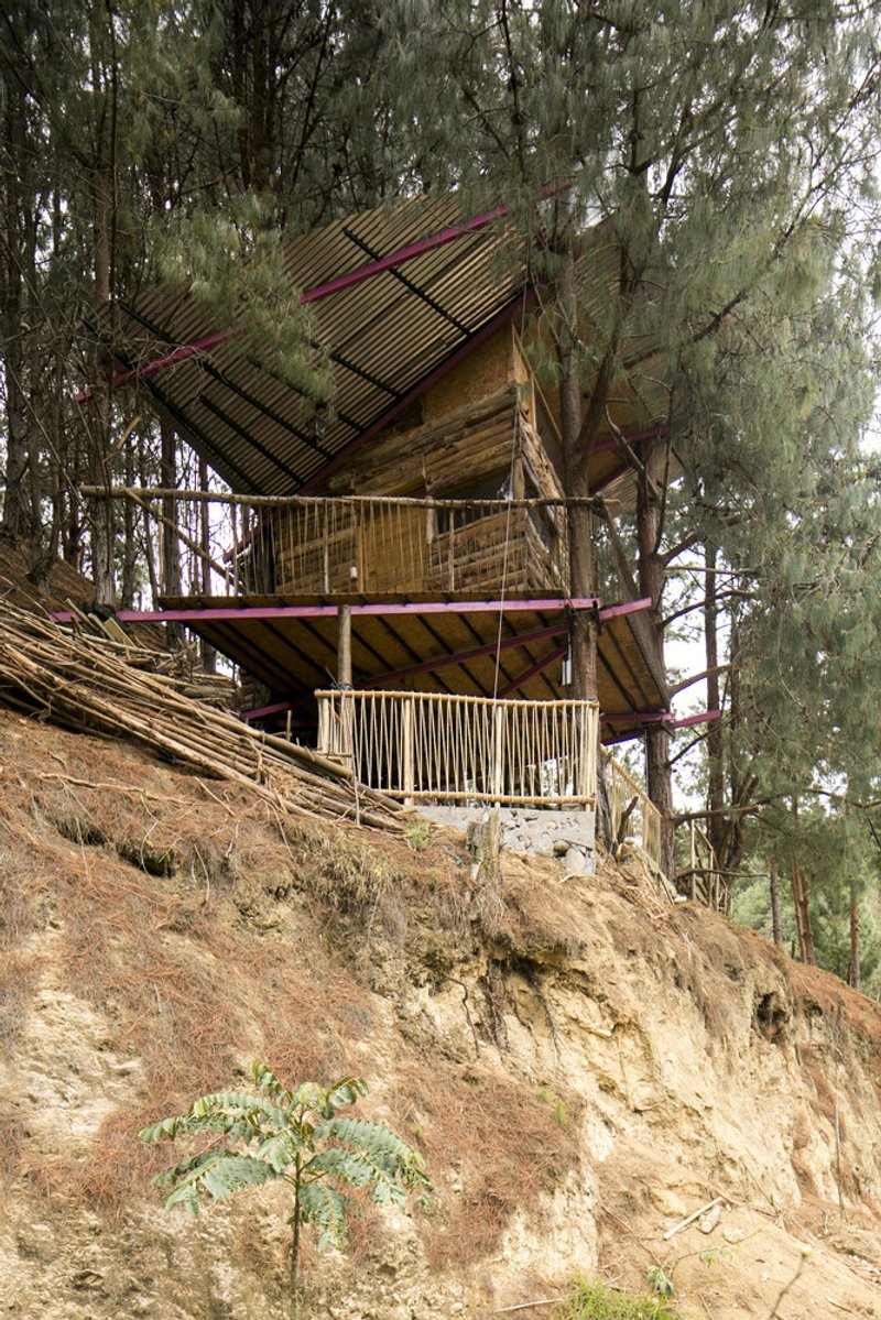 The design prioritizes minimal environmental impact, ensuring the trees remain unharmed while offering stability. Inspired by tree-climbing techniques, the support system uses non-invasive clamps to anchor the structure without damaging the trees. The main living space is elevated, providing breathtaking views of the Loja Valley while preserving the natural forest floor.