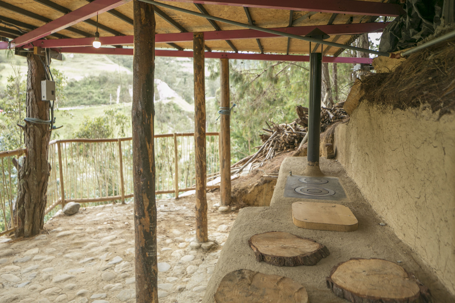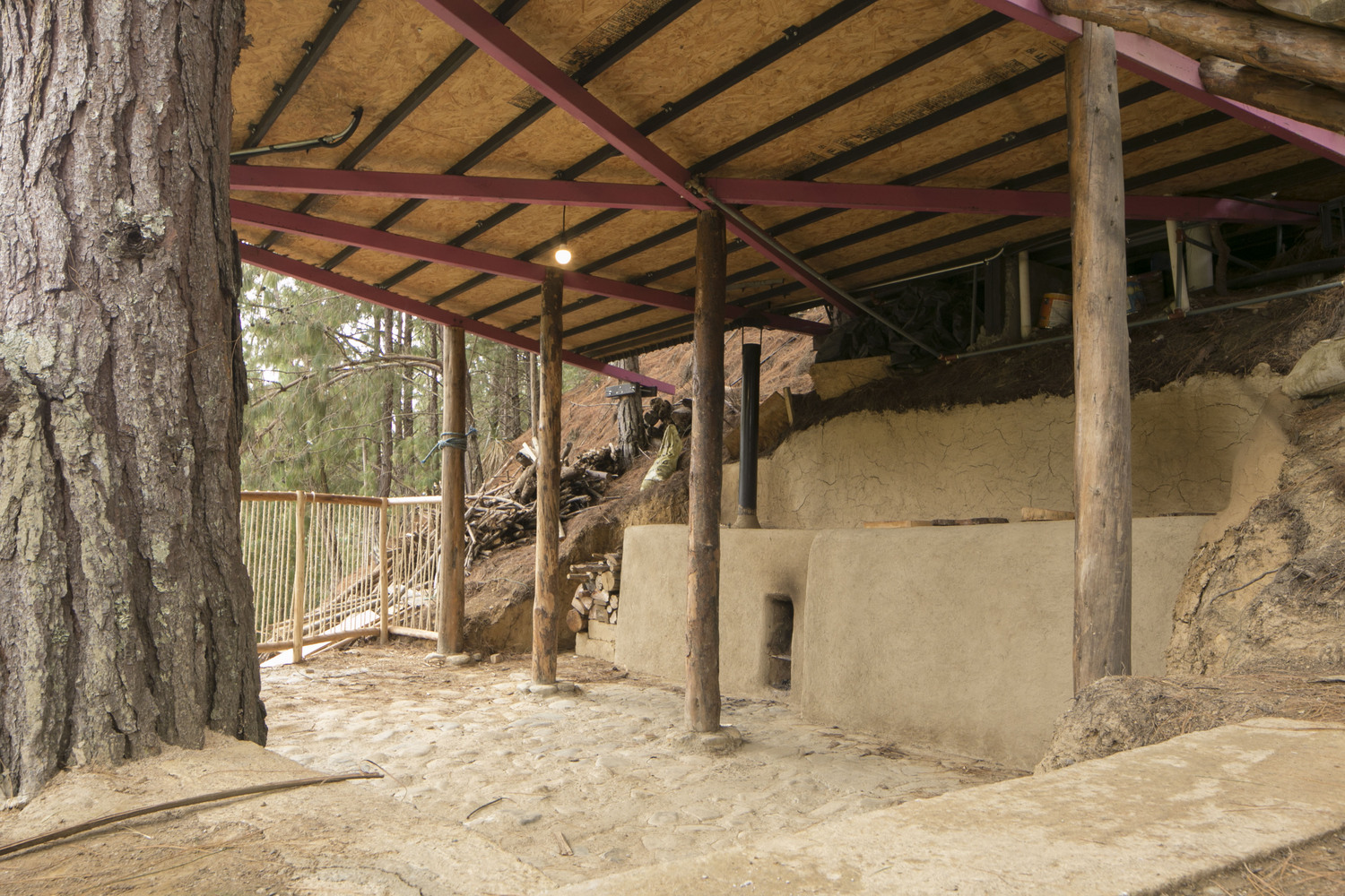 - Ground Floor (Viewpoint & BBQ Area): Nestled into the natural slope, this level features a clay kitchen integrated into the terrain, offering an outdoor cooking experience.