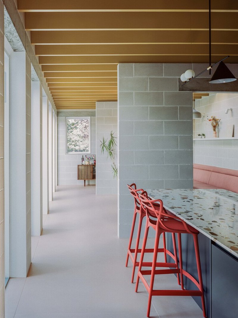 Triangle House by Artefact Studio is a carefully considered residential extension that reinterprets mid-century suburban housing through colour, geometry, and material restraint. Located at the end of a quiet cul-de-sac overlooking Roseberry Park in Epsom, the detached 1950s home has been transformed through the addition of a distinctive new wing that captures afternoon sunlight while strengthening the home’s relationship with its garden and surrounding landscape.
