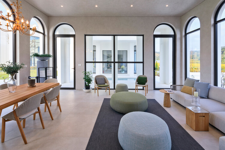 The landscape design played an equally important role, reinforcing the project’s philosophy of integration and continuity. From the initial site placement to the establishment of visual axes, landscaping ensures that indoor flows extend seamlessly into outdoor spaces.