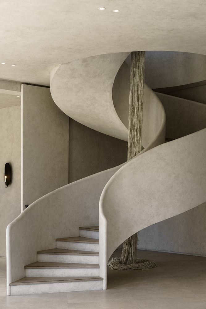 - Staircase as Pinnacle: The interior circular staircase was envisioned as the design’s climax. Unlike conventional spirals, it incorporates a point of inflection—changing direction mid-ascent. This unusual gesture transforms the staircase into both a functional connector and sculptural centerpiece.