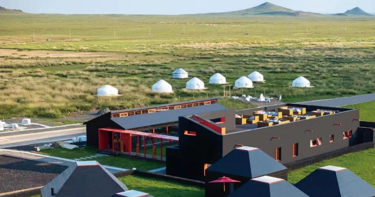 A sustainable grassland camp blending modern prefab ger-inspired architecture with volcanic landscapes, offering immersive eco-hospitality rooted in Mongolian cultural heritage.