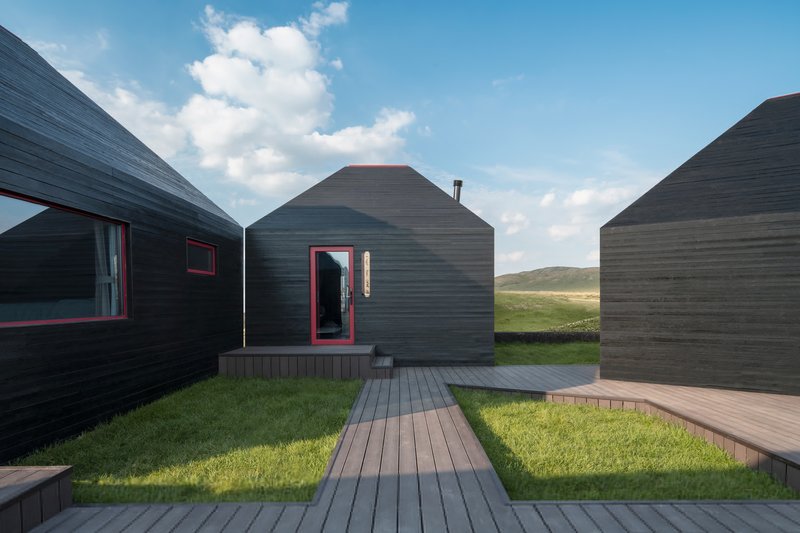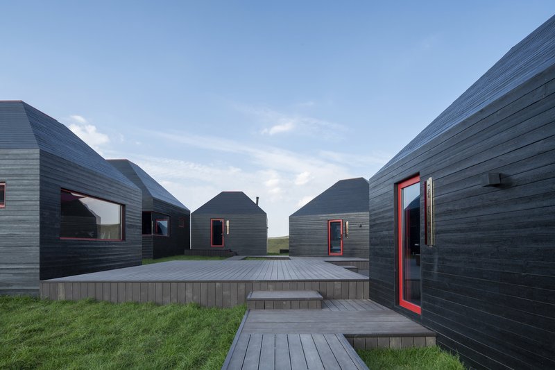 Positioned within one of China’s most renowned “Volcano Museum” landscapes—characterized by grassland volcanoes, lava fields, and dammed lakes—the camp embraces the region’s natural drama. Its fragmented layout breaks the program into seven structures: five accommodation units, a dining hall, and a reception center. This decentralized strategy respects the scale of nearby herder dwellings while maximizing exposure to the dramatic surrounding scenery, allowing guests to fully experience the vastness of the steppe and the geological heritage of the volcanic landscape.