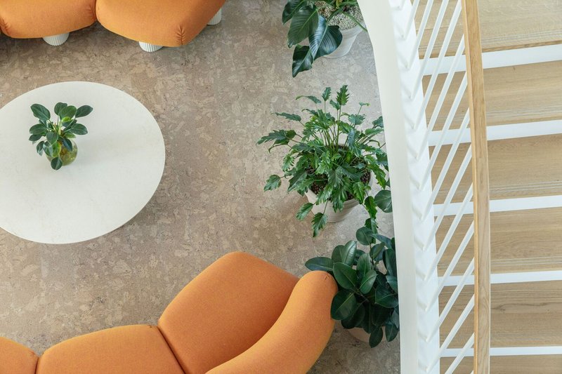 Unusual HQ’s structure and finishes reflect a deep commitment to sustainable material sourcing and circular thinking. From cork flooring and recyclable carpet tiles to breathable natural paints and Accoya timber cladding, each choice minimizes embodied carbon and maximizes future reuse.