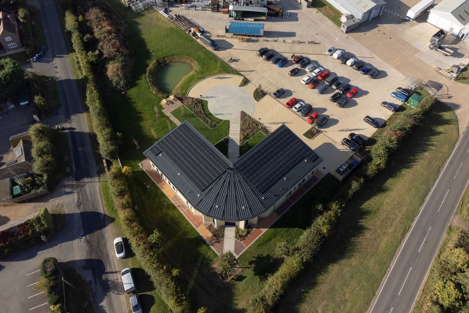 The exterior landscape is equally mindful of the circular ethos. Reclaimed cobblestones from the demolished Northampton Market Square add texture and history to the hard landscaping. Meanwhile, a biodiversity-rich softscape, including a pond that supports rainwater attenuation and animal habitats, enhances the ecological integration of the site.