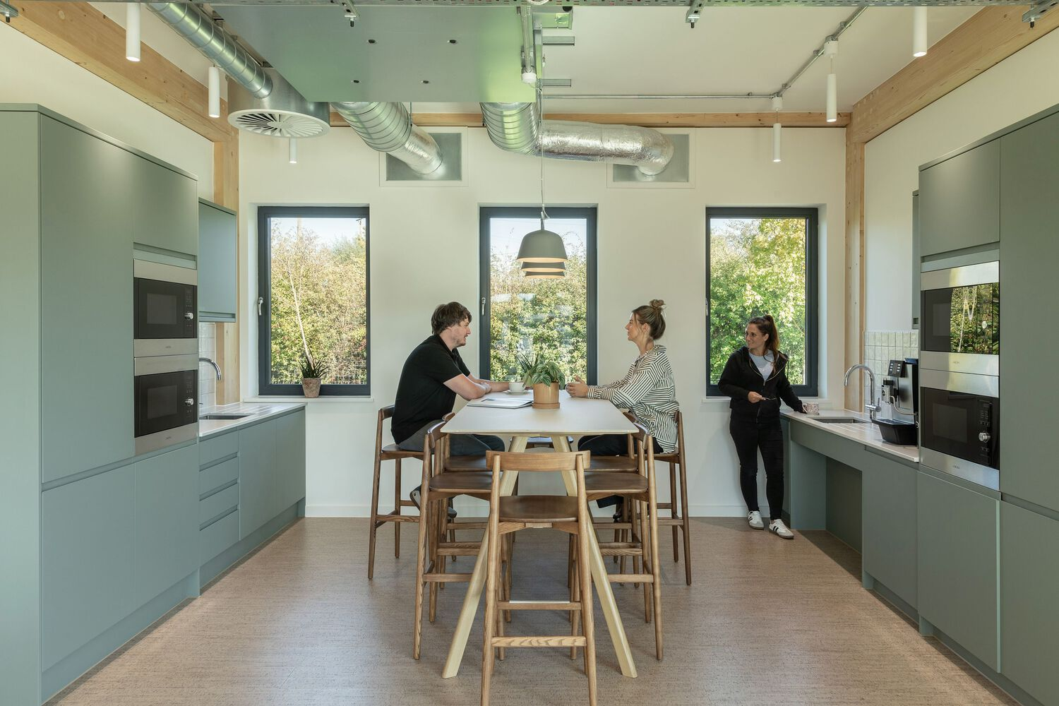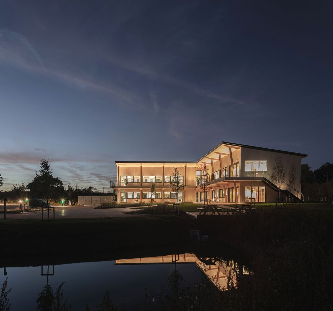 This new build is among the first of its kind in the UK, demonstrating how circular design thinking can be embedded from the ground up. With a glulam timber frame and biogenic materials, the building achieves an EPC A+ rating, producing more energy than it consumes, and standing as a symbol of environmental responsibility.