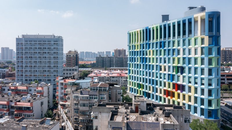 The Jinan Huizhong Starry Center stands out for its use of color, inspired by the natural and cultural landmarks of Jinan. The thoughtful application of these hues adds depth to the building's facade, creating a visual connection with the city's heritage.