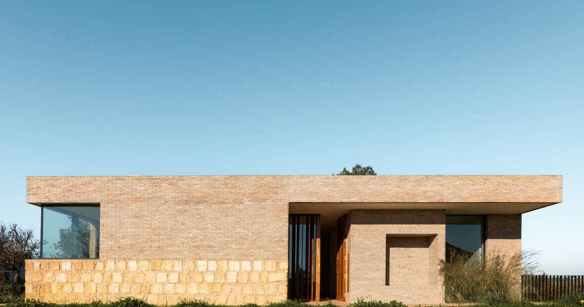 Strategically placed brick-clad volumes support the slab while maintaining a sense of openness. The living areas feature floor-to-ceiling glazing, ensuring uninterrupted views of the landscape while maximizing natural light. Meanwhile, the original limestone structure houses the functional spaces such as storage, bathrooms, and service areas.