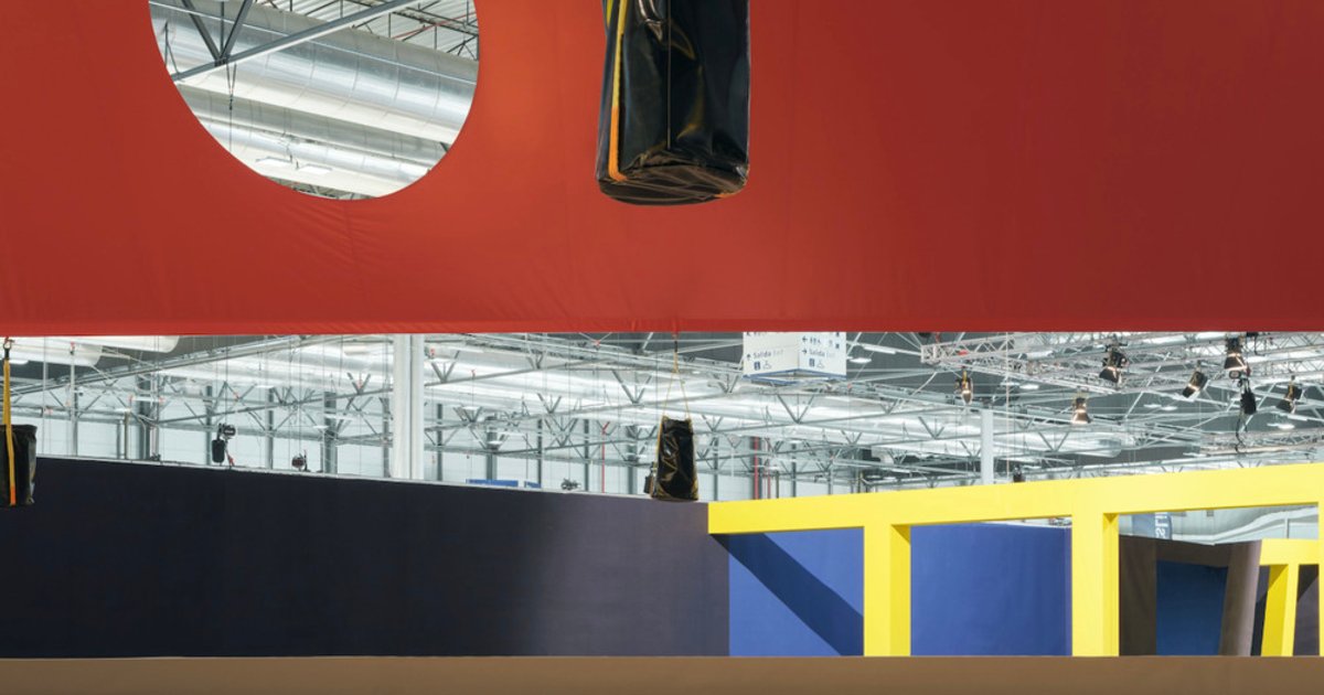 At the core of the installation is a striking large red tent—an architectural gesture that immediately evokes the spirit of Mediterranean festivals. Traditionally used in local verbenas (open-air festivals), the red tent becomes a symbol of ephemeral gathering, drawing a direct line between folkloric heritage and contemporary public art. Its vibrant form extends beyond the physical limits of the site, piquing curiosity and inviting exploration.