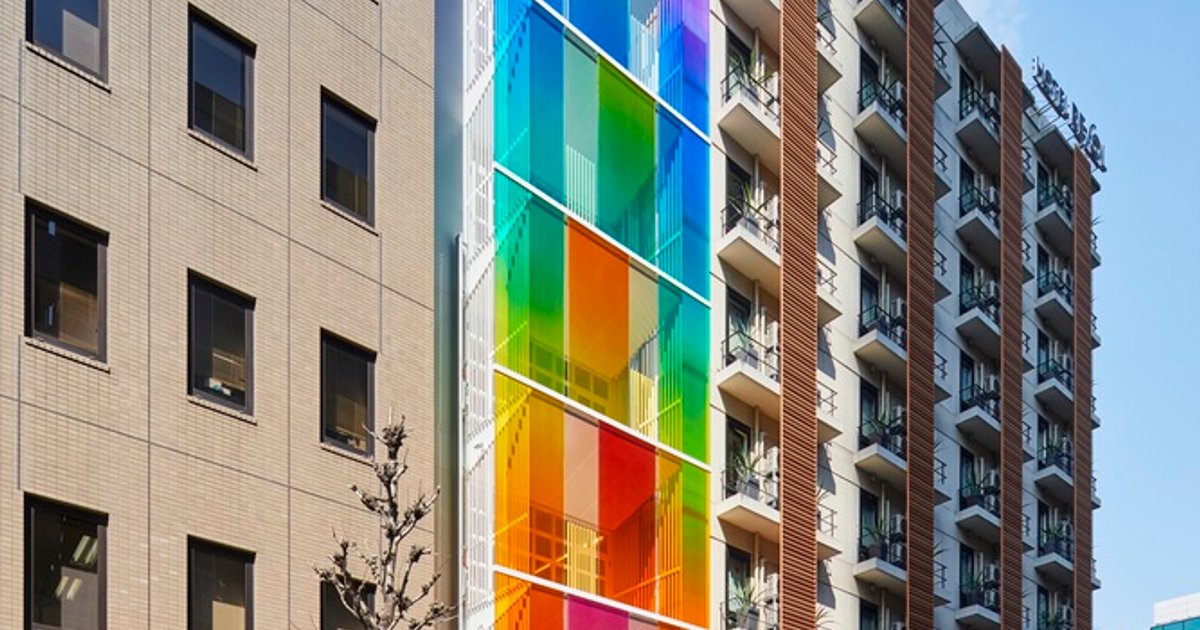 Vertical Rainbow Office Building by SAKO Architects: A Vivid Facade Transformation in Tokyo