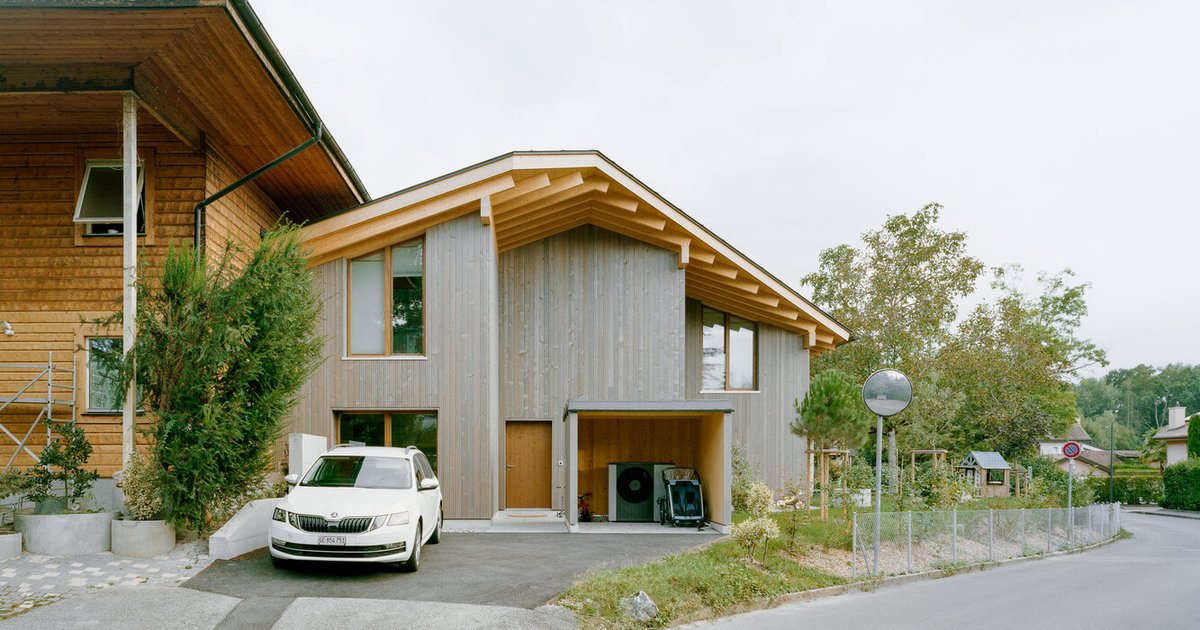 A sustainable residential villa in Veyrier, showcasing energy-efficient architecture, wood materials, and innovative design elements for modern living.