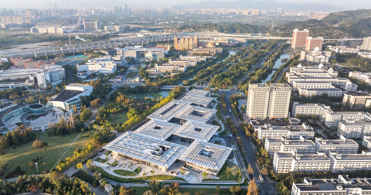 A standout feature of the Wenzhou Medical University International Exchange Center is its umbrella-inspired roof design, which aligns the eaves of the eight structures into a unified "tree canopy."