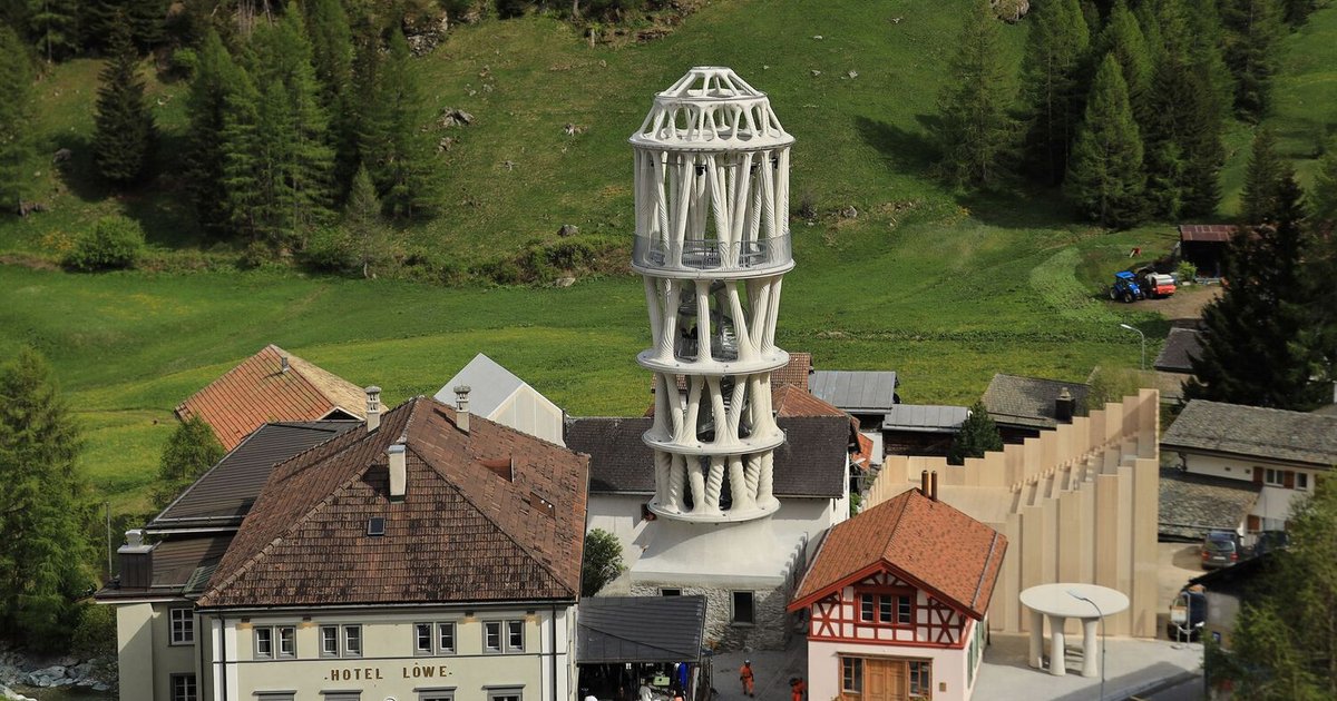 A groundbreaking 3D-printed tower in Switzerland combining digital fabrication, intricate ornamentation, and a unique performance space overlooking the Alpine landscape.