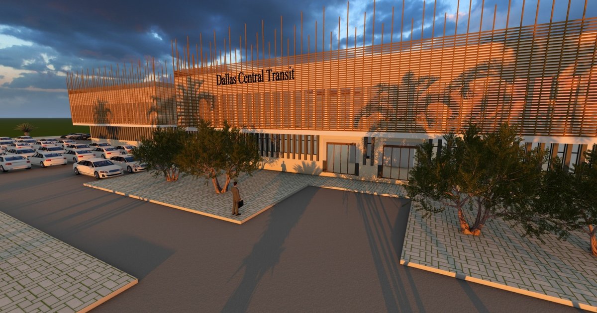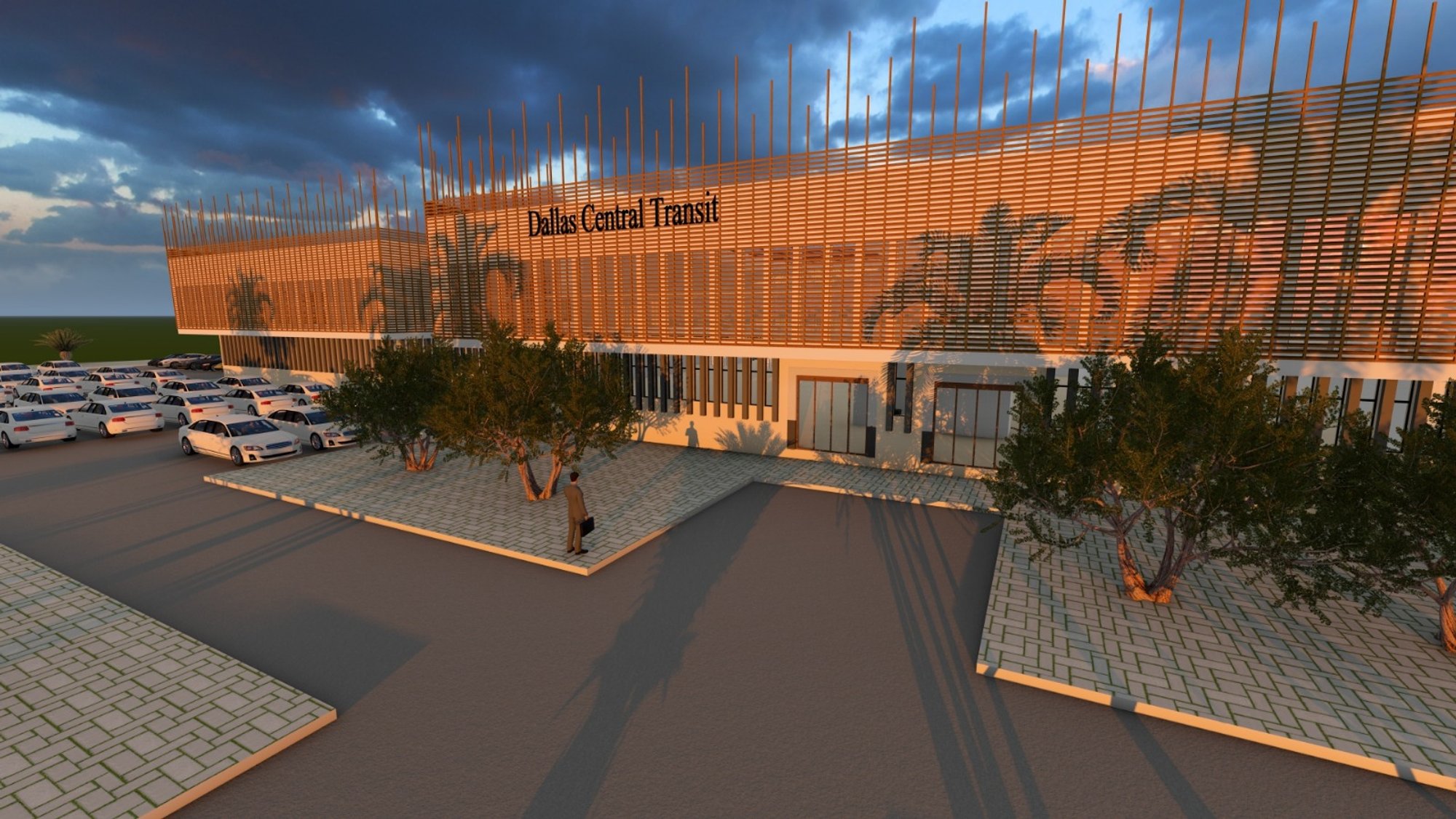 Dallas Intermodal Transit Hub This project is designed as a modern bus terminal to serve the city of Dallas, located in the state of Texas, United States. The terminal will accommodate both local and intercity bus lines, aiming to offer passengers not only transportation services but also rich social and cultural experiences.