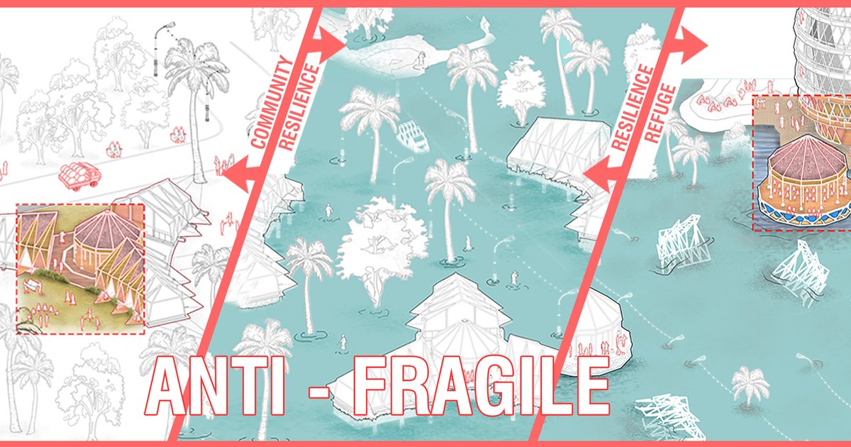 Some things benefit from shocks; they thrive and grow when exposed to volatility and uncertainty. Imagine a tomorrow that builds on the resilience from unpredictability using elements of Nature & power of regeneration towards a new horizon. ANTI-FRAGILE is a 3 insert approach to celebrate community, instate resilience in structures & thrive a new habitat.