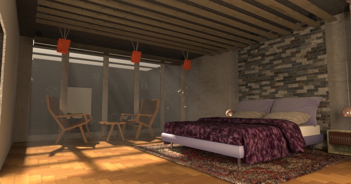 its a master bedroom with basic interior with a nature touch it attracts those people who wants more open and airy space with natures touch you surround with the greenery and gives you positivity when you wake up
