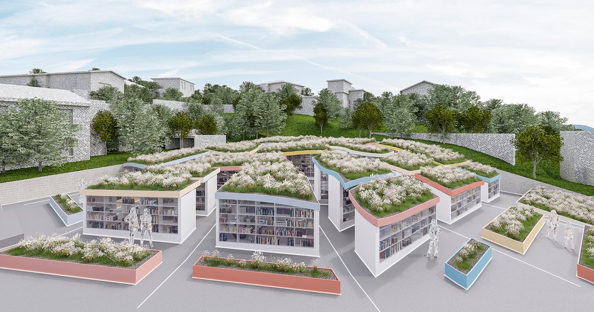 This library is intentionally left blank. Carved directly into the site, the collection is built over time by the community via on-site, print-on-demand services. Books can range from self-published, amateur photography monographs to run-of-the-mill, bestseller pulp fiction.