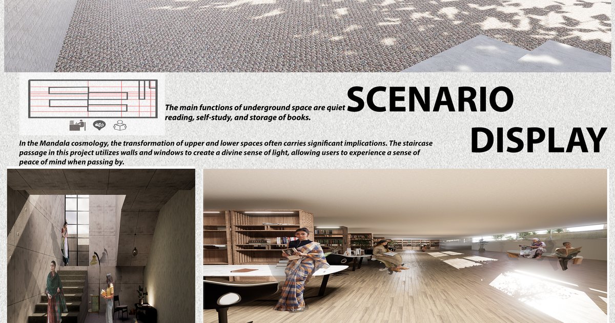 The library is committed to providing a quiet and comfortable multi-functional reading space for all classes of people with students as the main body. The design focuses on modifiable modules, environmentally sustainable air mobility, and the religious and literary connotations of India itself. For providing a spiritual harbor.