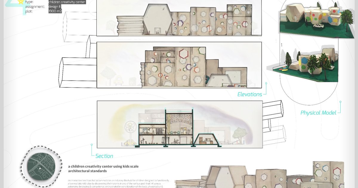 an interactive bee hive that accommodates an industry-like hub for children designed to functionally allow realistic role-play through the various pod that influences autonomy, belonging & competence; orchestrated in consideration of the basic physiological & psychological needs of their age groups.