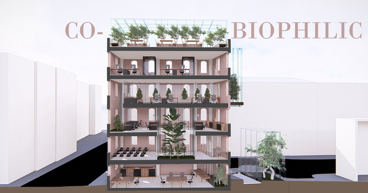 Co-Biophilic is the name of a co-working office where old and new combine through biophilic design.