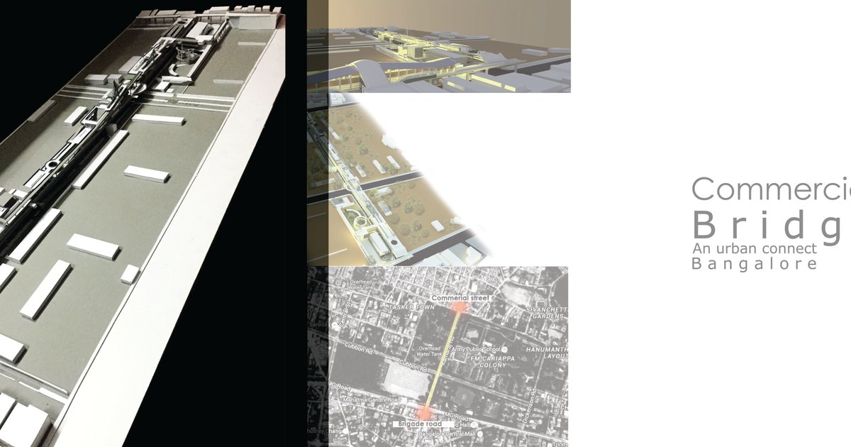 The project intends to solve the issue of dispersion of the two commercial hubs of Bangalore by proposing a bridge as an active connection,becoming an extension of the commercial centers at its end to form a single commercial hub, also promoting pedestrian activity. A prototype for activity bridge is created- a solution for scarcity of vacant land in future.