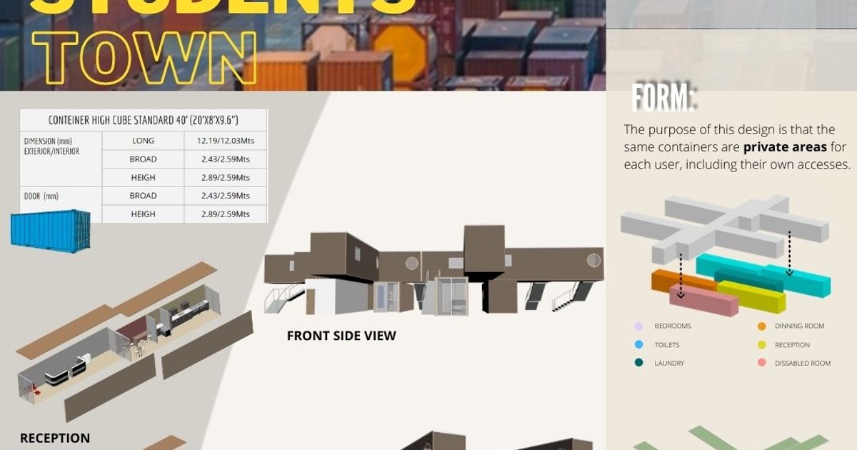 It seeks to use standard 40 'High Cube maritime containers as dormitories for university students, capable of adapting to any city, reducing construction costs, offering the best environment for their development.