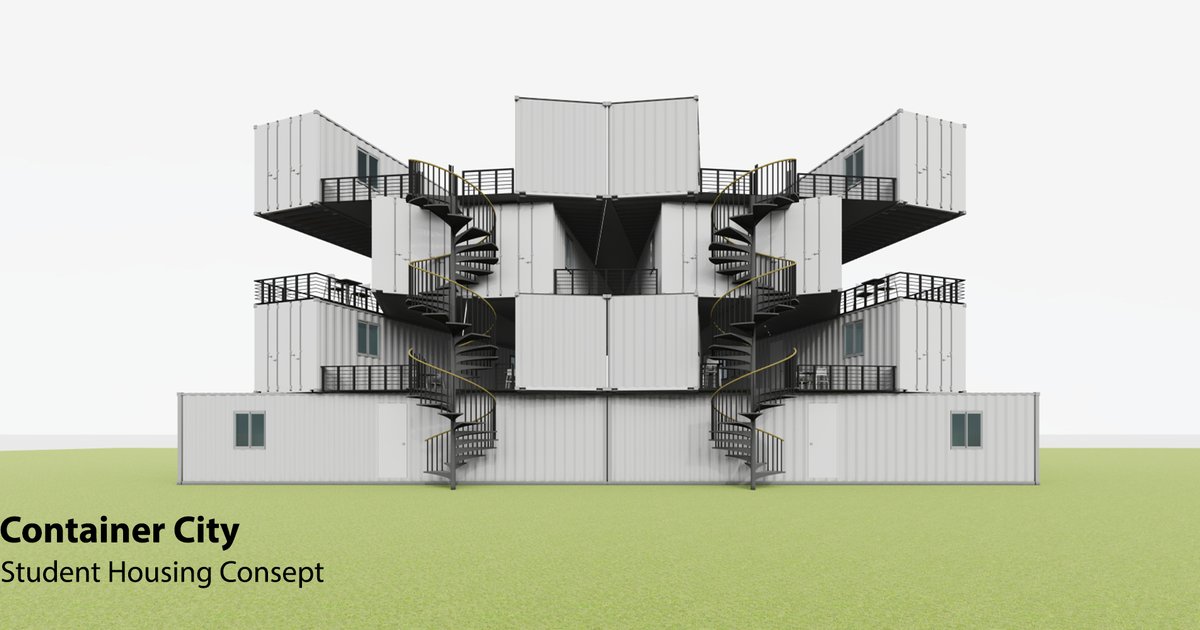 Student housing consept / In this project, it is aimed to use the terrace areas created by the angled layout of the containers effectively and to have a very low footprint.