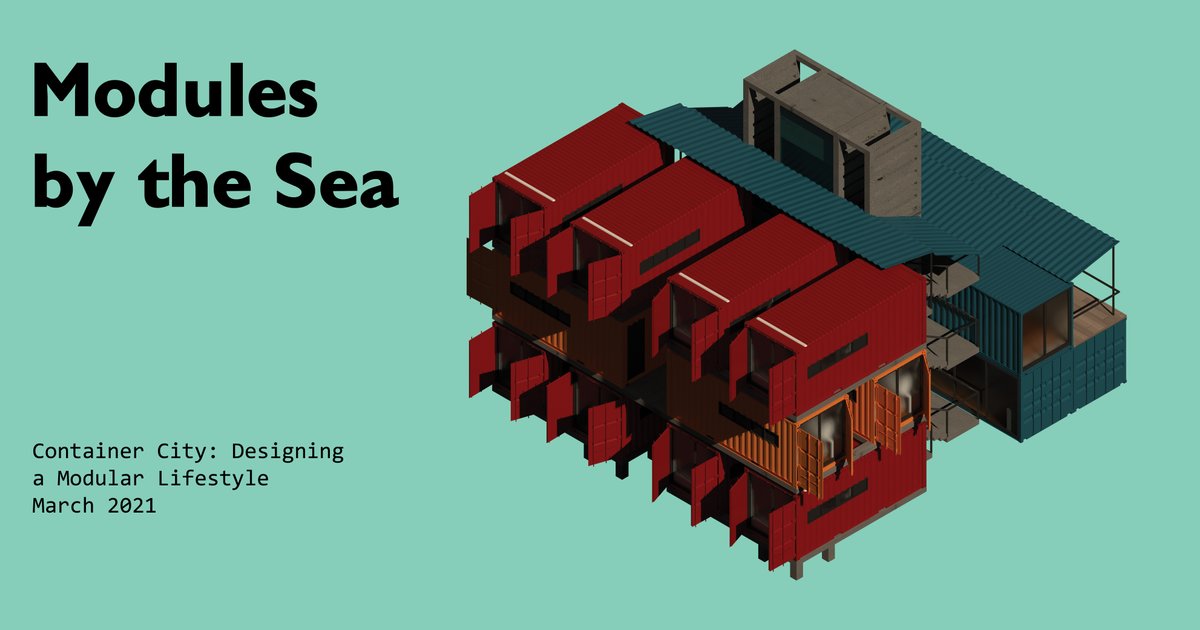 Inspired by Design History research and the Metabolism movement, ‘Modules by the Sea’ provides a site fitted to the human scale, highlighting accessibility, dynamism, and a connection to water in its design. The project presents a template for community building through containers, helping to mend the harmful impact that containerization has in port cities.