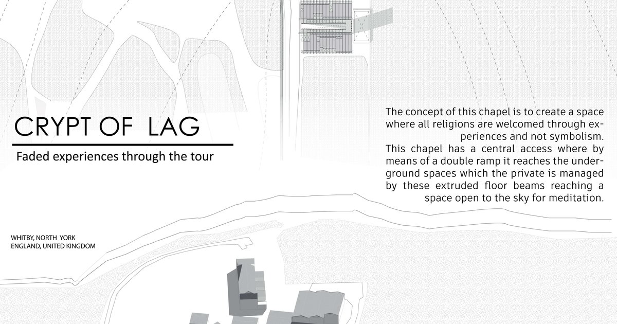 The concept of this chapel is to create a space where all religions are welcomed through experiences and not symbolism. This chapel has a central access where by means of a double ramp it reaches the underground spaces which the private is managed by these extruded floor beams reaching a space open to the sky for meditation.