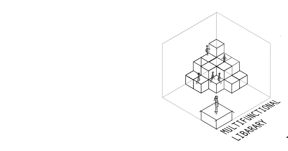 Cyborg indicates the boundary between nature and machine is blurred, which continues to the blurring boundary between people. We redefine the library and create more possibilities. The new era is inclusive, and the library can also be a leisure and entertainment area, which is equivalent to a creative centre/gallery. This provides a feeling of All-in-One.