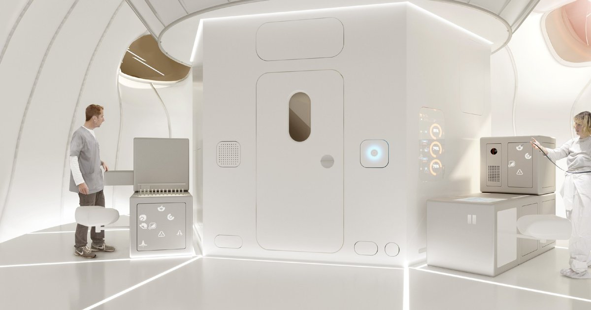 The habitat consists of the main module that is unfolded by the removal of the outer panels of the cylindrical body and an inflatable membrane that creates a spacious living space. Inside the module a hidden in the carcass transforming floor, which increases its diameter up to 10 m, creating a free zone for arranging workplaces and rest areas.